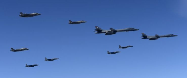 Monday’s flyovers over the Korean Peninsula involved two B-1Bs and four F-35Bs from the U.S. military and four F-15K fighter jets from South Korea, according to the South Korean and U.S. militaries. The U.S. and South Korean planes practiced attacks by releasing live weapons at a firing range in South Korea, the U.S. Pacific Command said in a statement.
