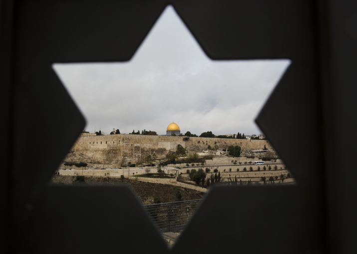 Jerusalem Old City is seen trough a door with the shape of star of David, in Jerusalem