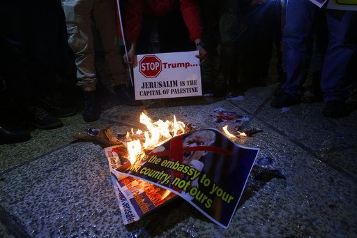 In Gaza, hundreds of Palestinian protesters burned American and Israeli flags and waved Palestinian flags and banners proclaiming Jerusalem as "our eternal capital" and calling recognition of it as Israel's capital a "red line." Hamas, the militant group that controls Gaza, called for more protests over the coming days.