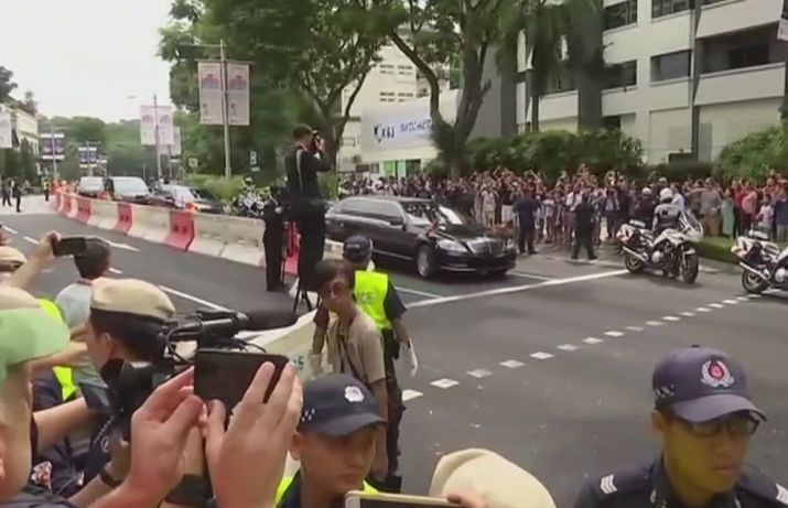 Kim Jong un zipped through Singapore streets in a black limosuine with North Korean flag as thousands of journlaist stood by