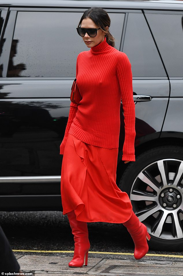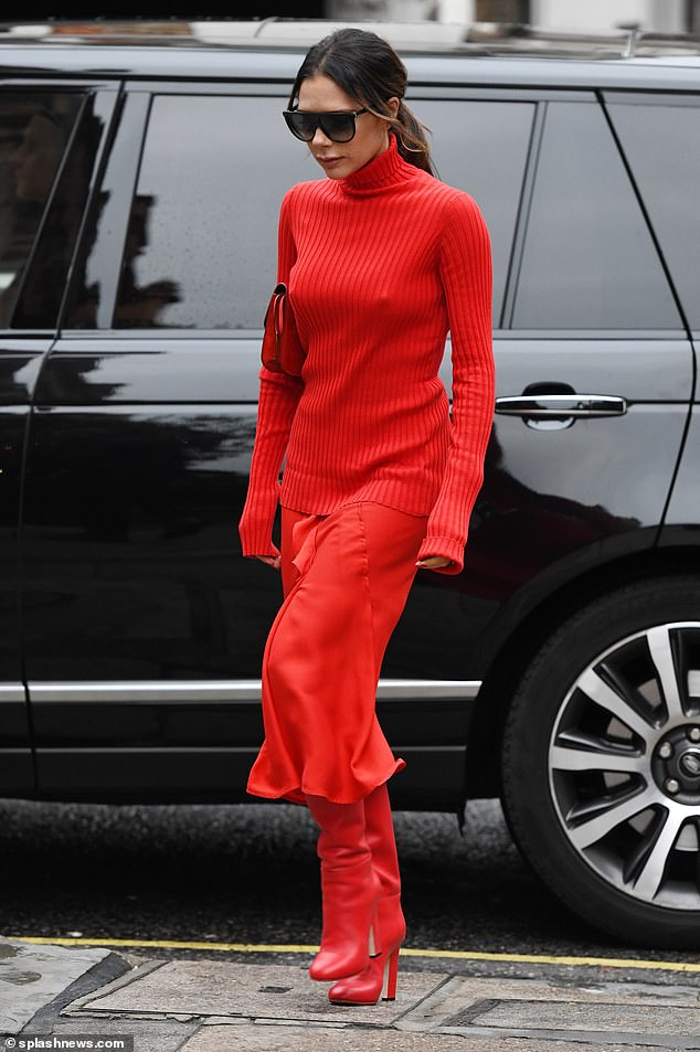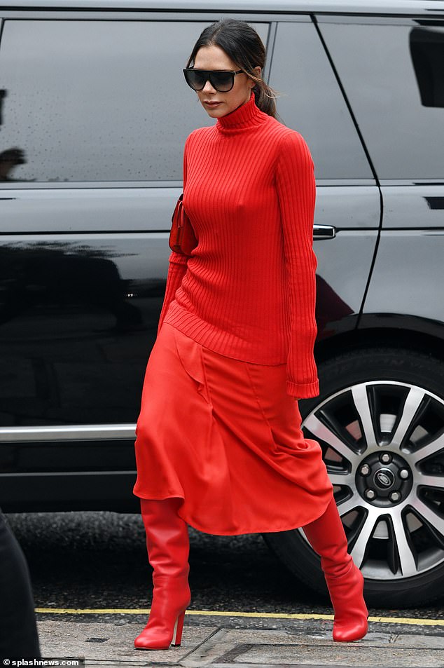 She has shunned the Spice Girls' reunion to work on her eponymous fashion brand. And Victoria Beckham showed off her sartorial flair as she stepped out in London in an all-red ensemble on morning.