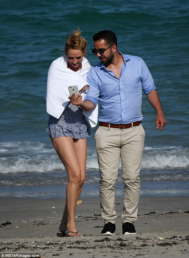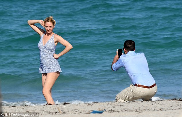 The Gattaca star was seen posing in a swimsuit on Hollywood Beach in Florida as a male shutterbug snapped away.