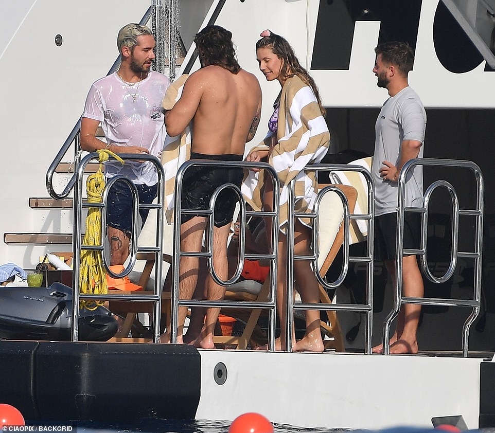 The couple took a dip in the Med, getting back aboard and drying off together in the baking hot sunshine as they sailed around the shores of Corsica.