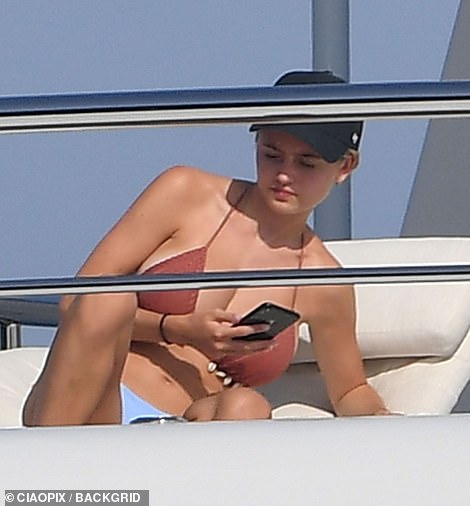 Daughter: Leni was seen descending from the upper deck with a glass in her hand, sipping on it and joining the rest of the family on their sun beds