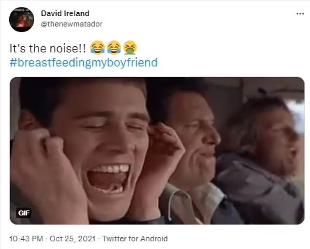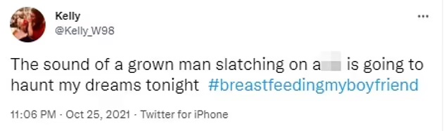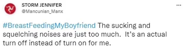 A third added: 'Oh god. The noise!!! The noise!!!' while a further penned: 'The sound of a grown man latching on a t** is going to haunt my dreams tonight.'