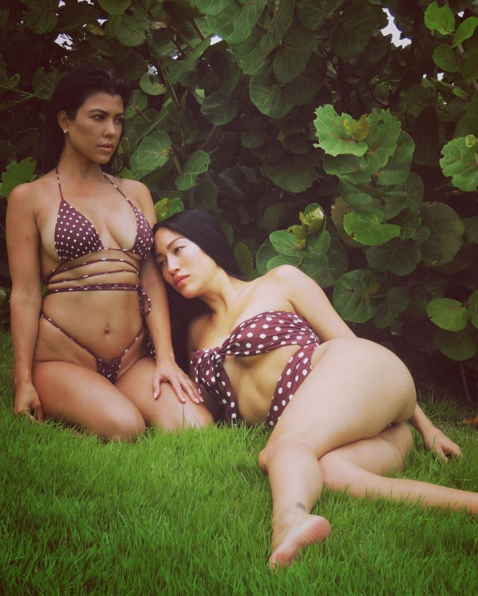 Kourtney looks sensual in a polka-dotted bikini that matches her friend's. (Image: Instagram)