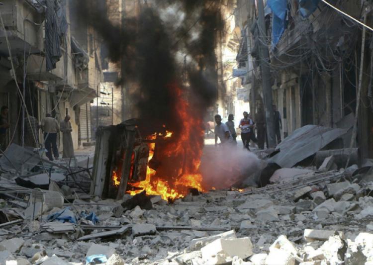 Syrian government forces have been on the offensive in Aleppo for days under the cover of intense airstrikes. State news agency SANA said rebels shelled the government-held part of Aleppo, killing 20 and wounding 55.