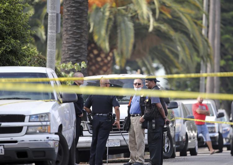 Police investigators work the scene of a fatal shooting in LA